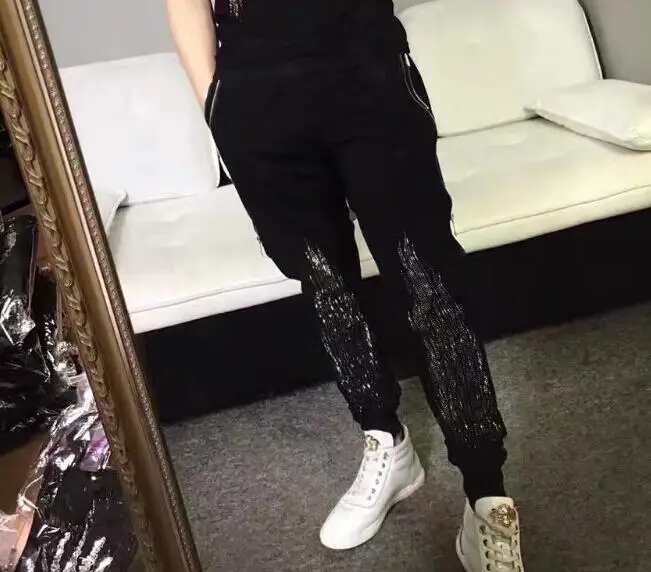 Для бега впитывает пот и Штаны трек Штаны Для мужчин Slim Fit тренировочные брюки мужские Мульти-Карманные Повседневное штаны со стразами Штаны дизайн спортивной одежды