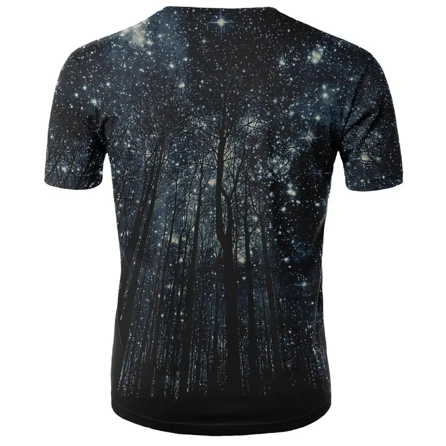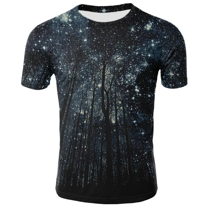 Футболка мужская с 3d-изображением ночного неба, рубашка с круглым вырезом и коротким рукавом, с принтом дерева, для мальчиков и девочек, в космическом стиле, fasihon