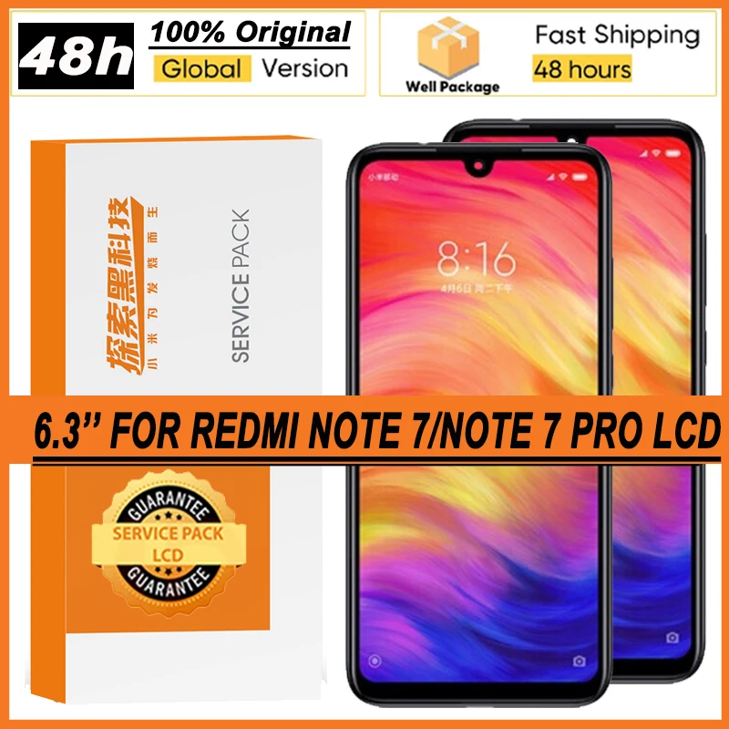 100% Оригинальный 6,3 "IPS дисплей с рамкой для XiaoMi Redmi Note 7 Note 7 Pro ЖК-дисплей с сенсорным экраном дигитайзер в сборе запасные части