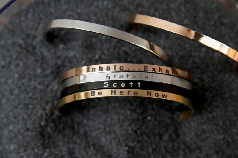 Индивидуальный персонализированный браслет с лазерной гравировкой шириной 4 мм, браслет из нержавеющей стали, браслеты-манжеты, ожерелье, подарок для влюбленных
