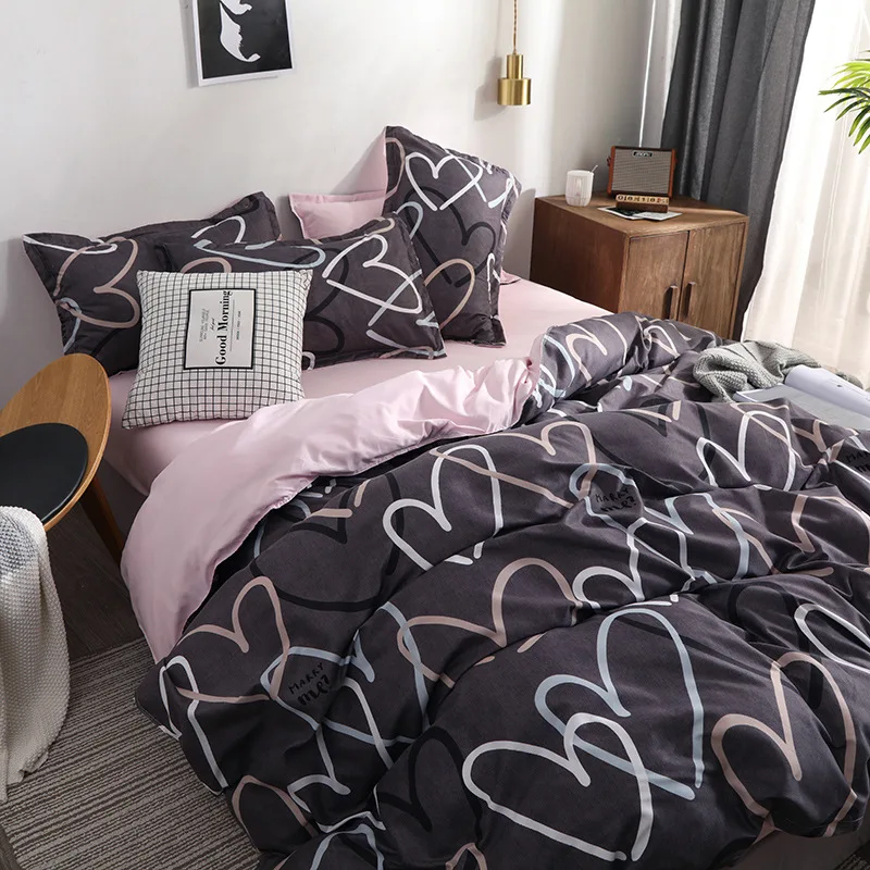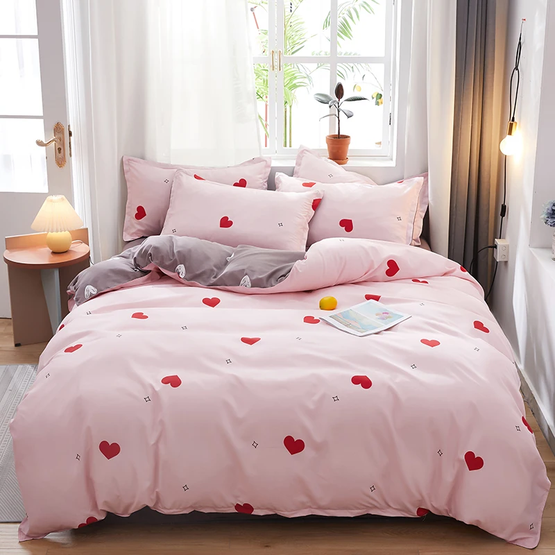 С принтом в виде сердца Комплект постельного белья 3/4 шт. постельным бельем кровати домашний текстиль постельное белье Классический постельное белье, простынь и наволочки) Бель