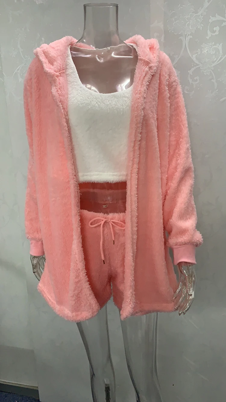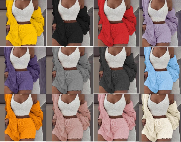 Женская трикотажная Повседневная бархатная пижама из трех предметов, пикантный кардиган, короткий топ и шорты, пижама, женская пижама