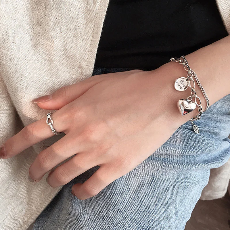 Браслет женский из серебра 925 пробы с надписью Love и сердечком