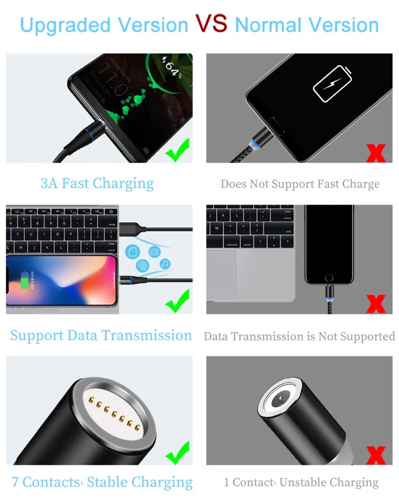 Магнитный зарядный кабель 3 А с Micro USB, зарядное устройство типа...