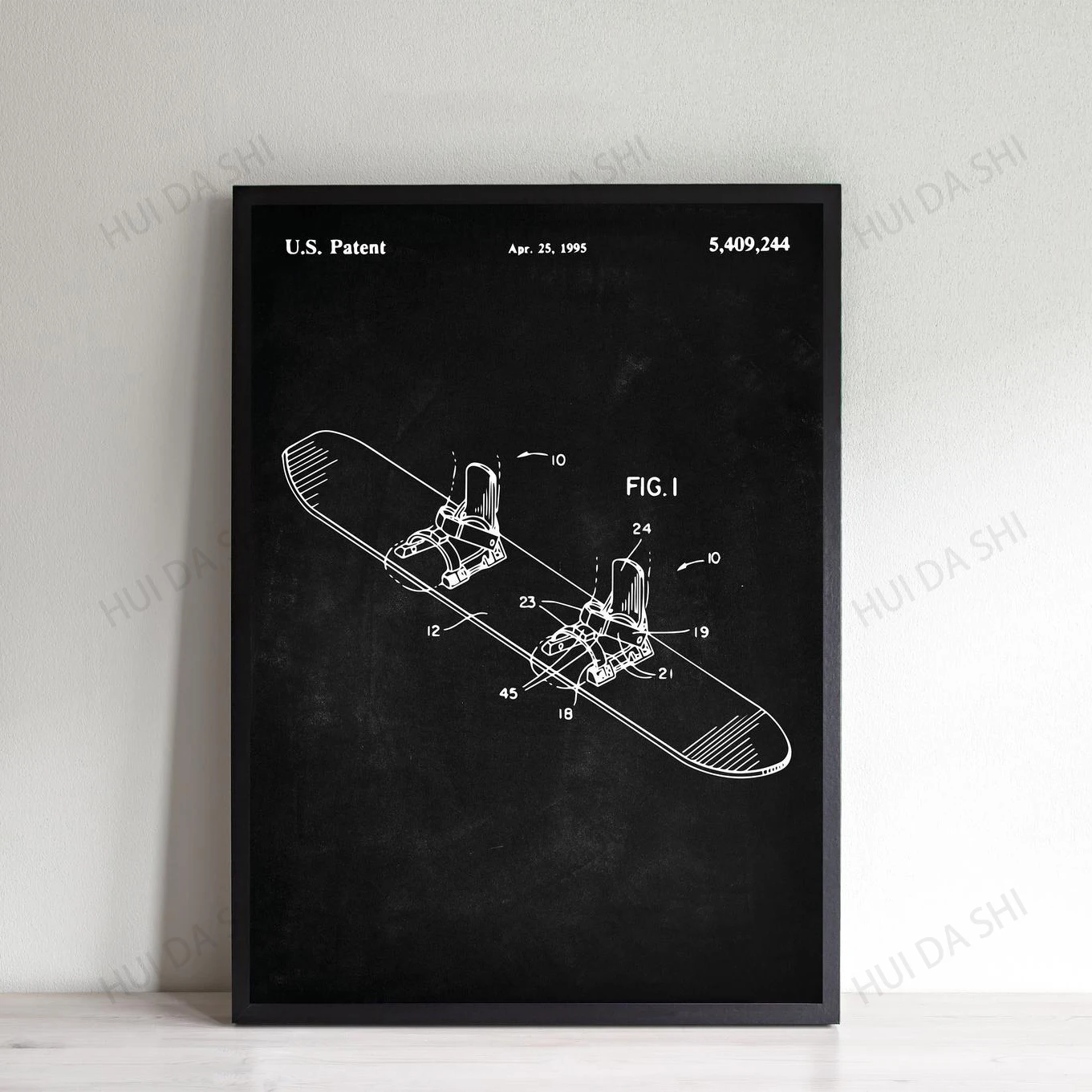 Набор для сноуборда из 3 предметов, патент на сноуборд, плакат с очками, художественный шлем, патент на подъемное кресло, декор для зимних видов спорта, Мгновенная загрузка