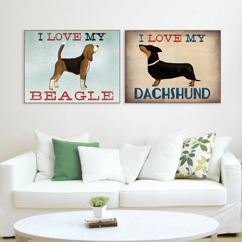 Винтажные постеры и принты собака влюбленная Бигль такса настенные картины для гостиной домашний декор холст печать на стену ретро icon star icon star icon star icon star icon star