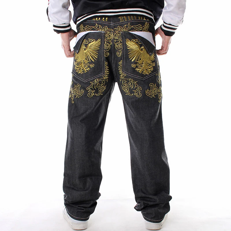 Джинсы мужские большого размера d, свободные брюки из денима с широкими штанинами, прямые брюки-багги, уличная одежда в стиле хип-хоп, брендовые черные штаны, большие размеры 30 - 46