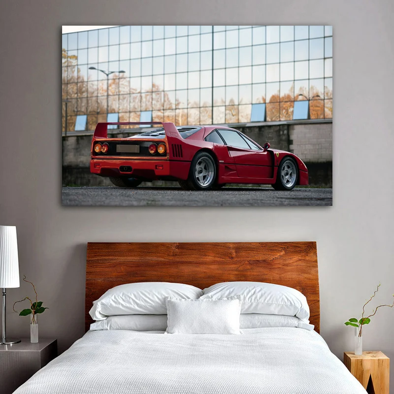 Постеры на стену с изображением классического автомобиля феррариса F40, Красного автомобиля, спортивного автомобиля, тканевая печать, картины для декора гостиной