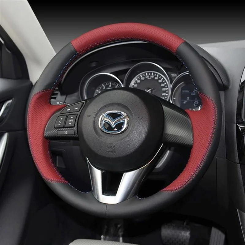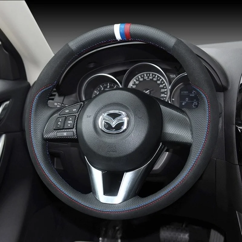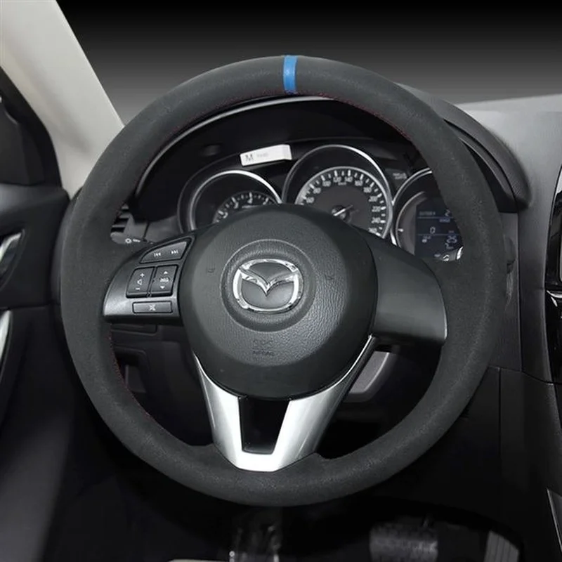 Прошитый вручную кожаный замшевый чехол рулевого колеса автомобиля из углеродного волокна для Mazda 36 M5 Cx-5 Cx-4 аксессуары для интерьера