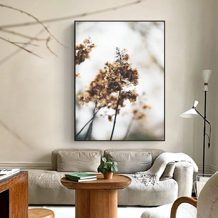 Картина на холсте, настенная живопись, бежевый высушенный цветок, рисунок язычков, современный скандинавский настенный постер, картина для украшения дома