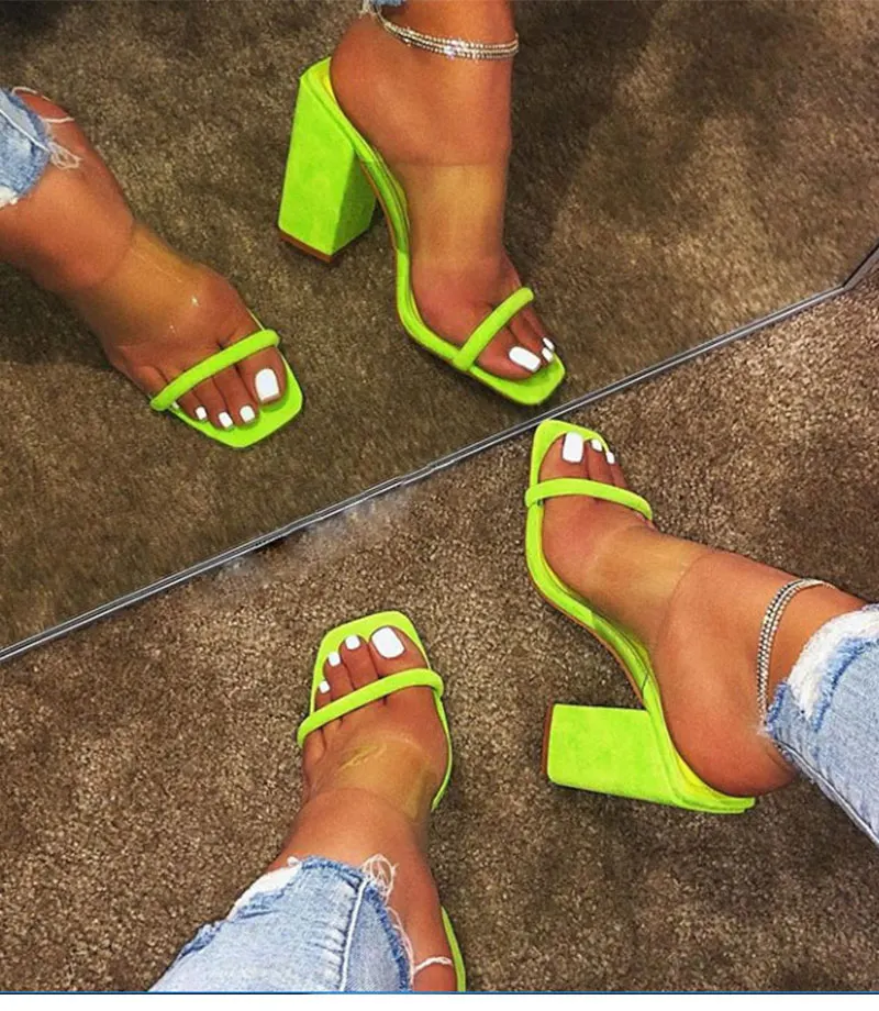 Женские прозрачные сандалии из ПВХ, женские сандалии на высоком каблуке, искусственные Модные женские сандалии с открытым носком на толстом каблуке