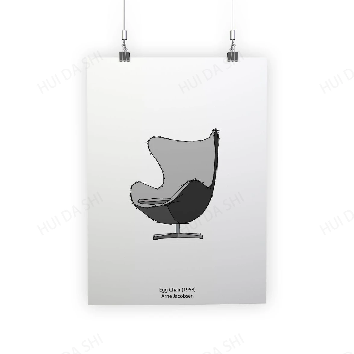 Стул в форме яйца, 1958, Арне Якобсен, архитектура, мебель, печать на холсте, Мгновенная загрузка, стул, современный дизайн