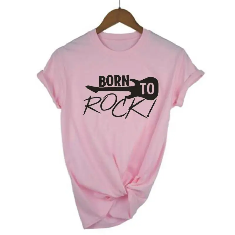 Футболка женская с коротким рукавом, смешная Повседневная рубашка с принтом музыкальной группы, топ с надписью Born To Rock, с принтом барабана, гитары, на лето
