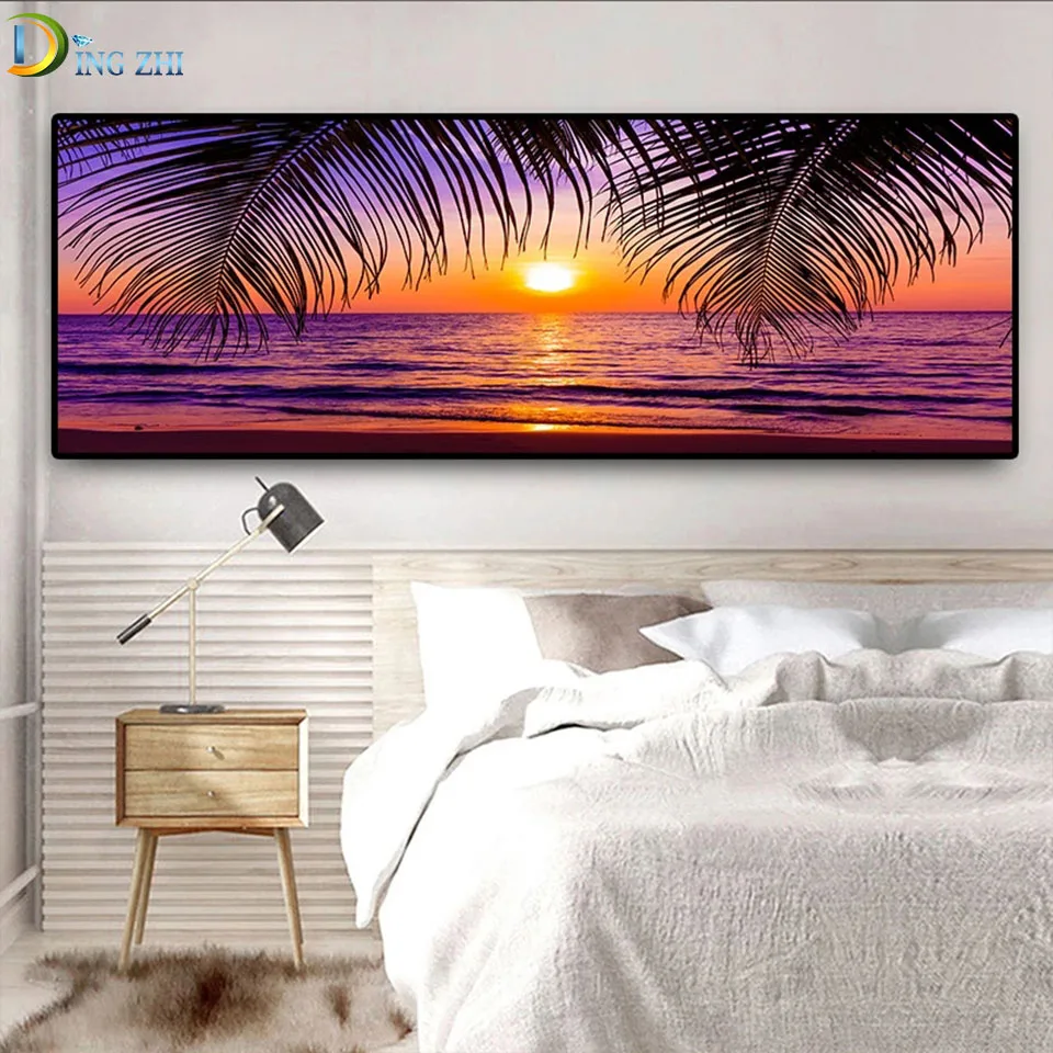 Морские пляжные сарафаны из натурального волокна кокосовых пальм панорама 5D DIY Алмазная картина вышивка крестиком настенная художественная мозаика наборы большой размер