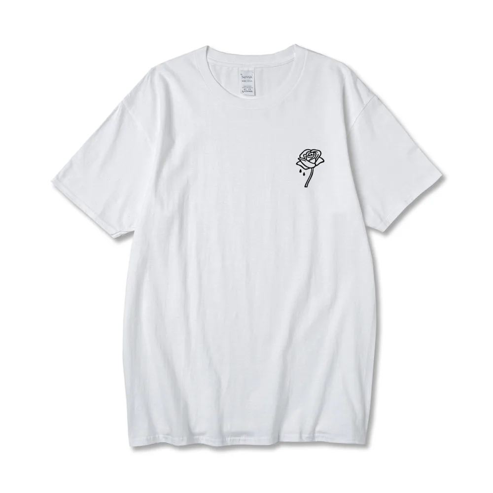 2021Harajuku Мужская и женская футболка, модная футболка с принтом розы, Повседневная Хлопковая мужская футболка с круглым вырезом, футболки с короткими рукавами, летние топы