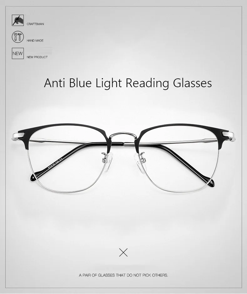 Деловые очки для чтения RBENN, из нержавеющей стали, с защитой от синего света, для пресбиопии, компьютерные очки с линзами CR-39 + 0,5 1,75 2,75