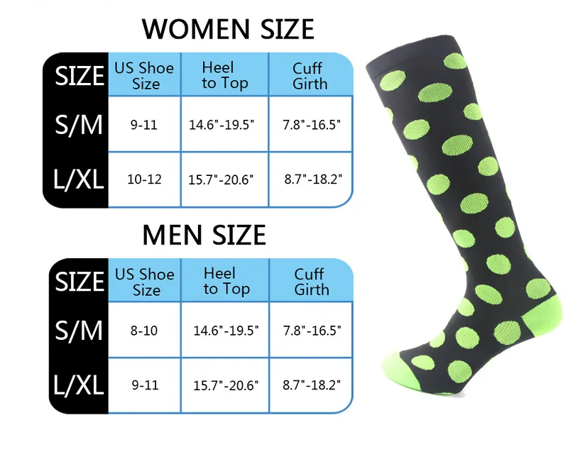 Компрессионные гольфы унисекс в черный горошек для снятия усталости...