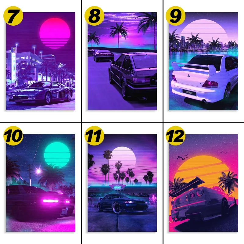 Без рамки автомобиль Synthwave настенный художественный Принт Холст Картина скандинавские плакаты и принты настенные картины