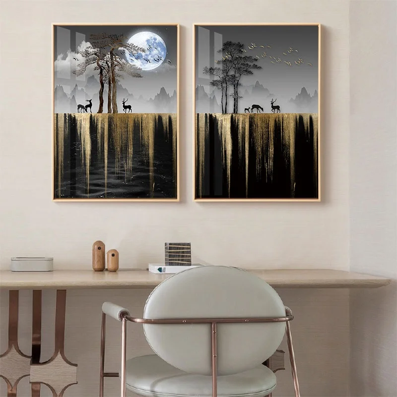 Без рамки 5 шт. Золотой дерево олень Луна холст для живописи отпеча...