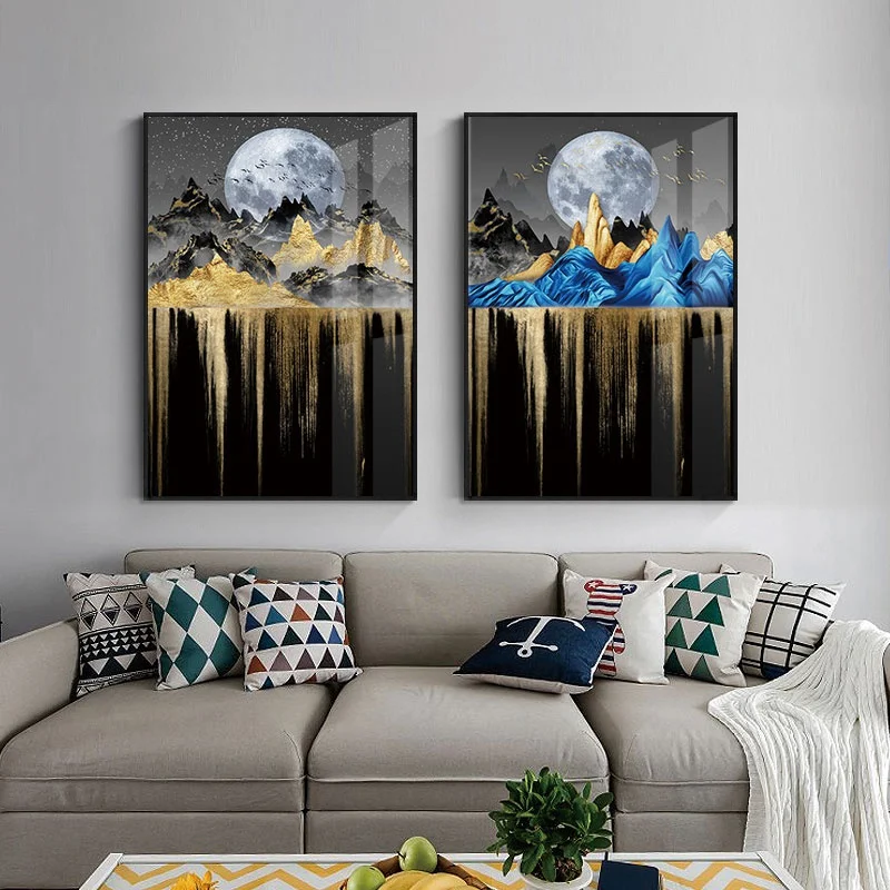 Абстрактный постер без рамки с изображением Луны и дерева, живопись на холсте, роскошный настенный декоративный постер для гостиной, спальни, домашний декор