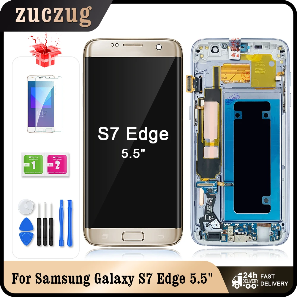 ЖК-дисплей Super AMOLED 5,5 дюйма для Samsung Galaxy S7 Edge G935F SM-G935FD, сенсорный экран с дигитайзером в сборе с рамкой