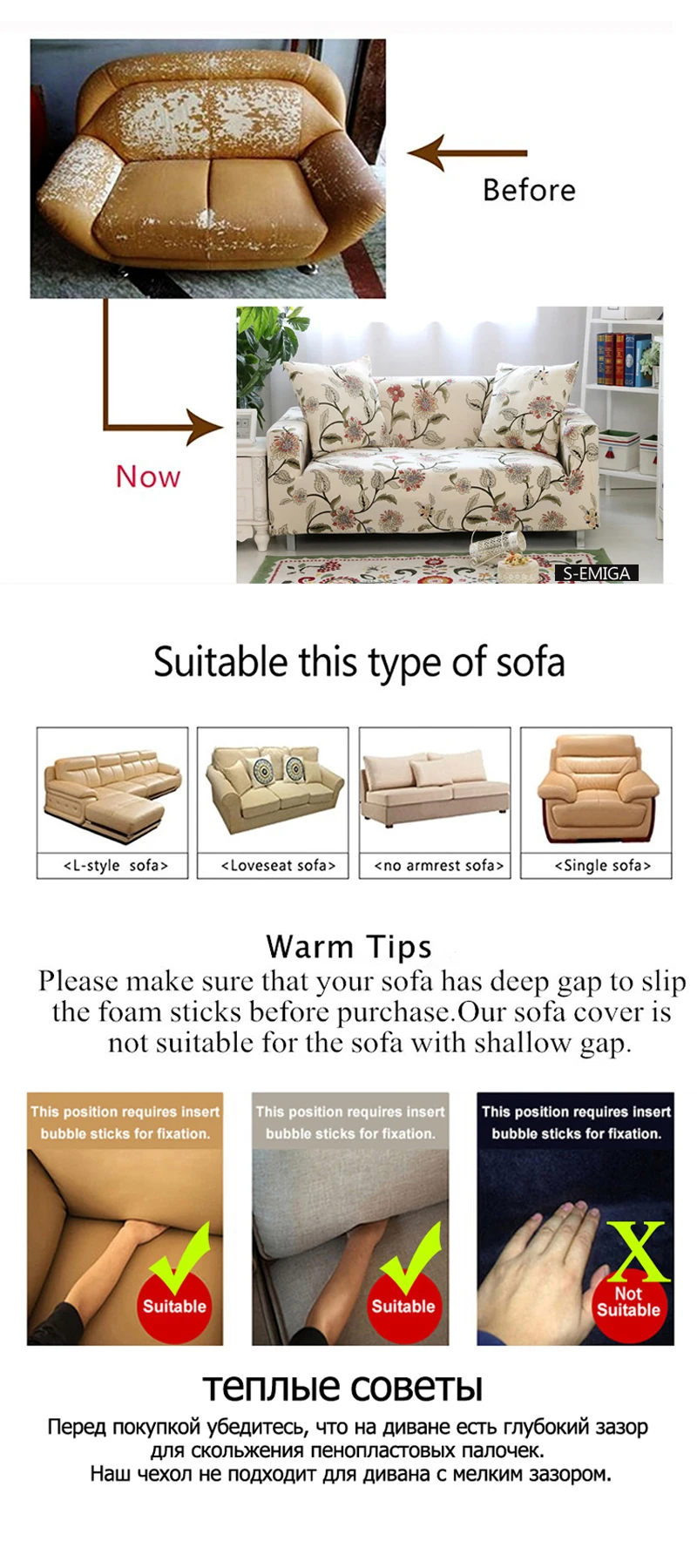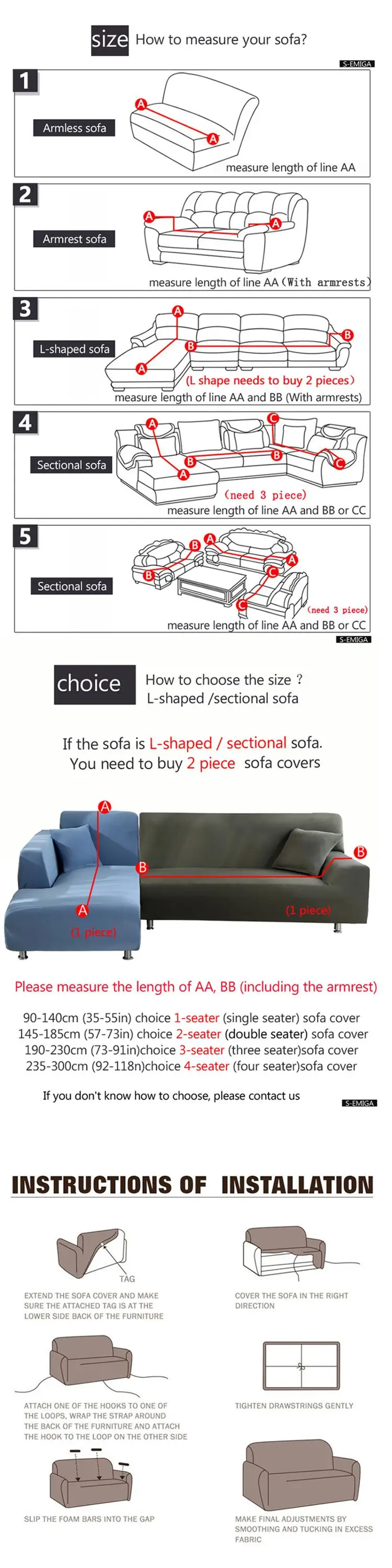Посылка включает в себя: 1 шт. чехол для дивана Продукт-это только чехол для дивана, не включая чехол для подушки. (цена за единицу составляет только 1 шт., не включает чехол для дивана или другие аксессуары, если вы хотите чехол для дивана.) Размер предполагает:1 сиденье:Подходит для дивана длиной 90-140 см2 сиденья:Подходит для дивана длиной 145-185 см3 сиденья:Подходит для дивана длиной 190-230 см4 сиденья:Подходит для дивана длиной 235-300 смПожалуйста, измерьте свой диван с подлокотниками, затем выберите размер. Если вы не измеряете подлокотники, крышка дивана будет меньше, чем ваш диван. Для L типа или углового или секционного дивана, который в сочетании с 2 частями отдельно, вам нужно заказать 2 шт покрытия для него. Размер чехла будет зависеть от длины линий AA, BB и CC. Например: если AA = 200 см, BB = 160 см, то вам следует выбрать 1 трехместный диван-чехол и 1 двухместный диван-чехол. Наш чехол для дивана подходит для дивана, который имеет зазор, между сидением со спинкой и подлокотником. (Пожалуйста, убедитесь, что ваш диван имеет глубокий зазор, чтобы выскользнуть пенопластовые стержни перед покупкой. Наш чехол для дивана не подходит для дивана с мелким зазором.)Использование: его можно использовать в качестве защитного чехла для дивана. Материал гибкий.Размеры могут отличаться на 2-5 см.