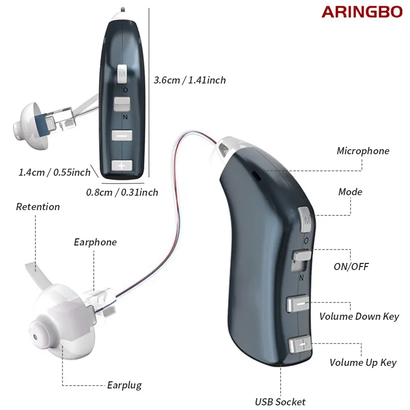 Цифровой слуховой аппарат, перезаряжаемый аудиофонный усилитель звука, профессиональный слуховой аппарат BTE, слуховое устройство, аудиофоны для глухости