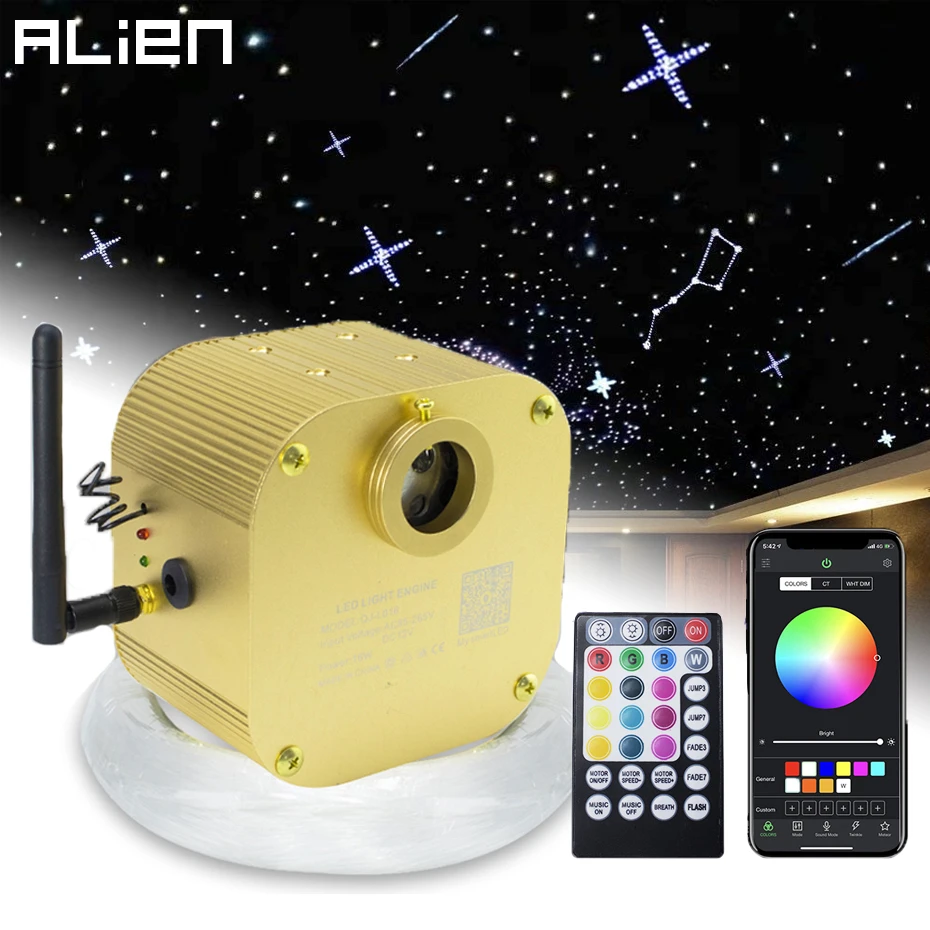 Оптоволоконный светильник, 16 Вт, RGBW, мерцающий светильник, Звезд...