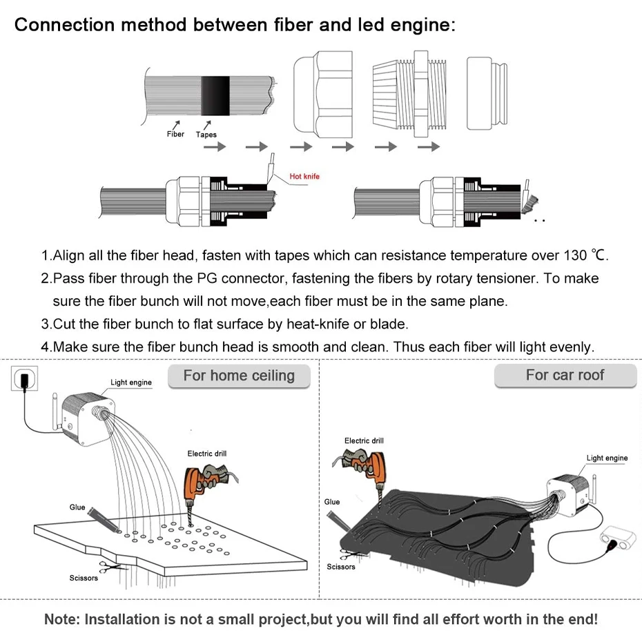 * Оптическое волокно небольшого размера, мягкое и гибкое, легко создать и сделать все, что вы хотите, чтобы форма.