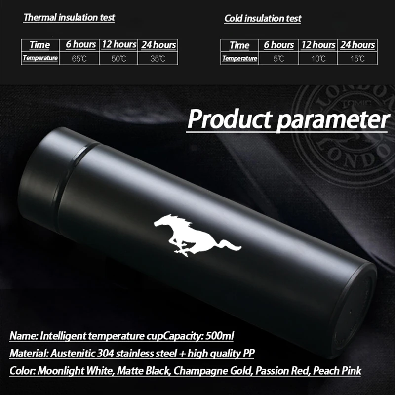 Вакуумная колба, стандартная кружка для путешествий с ЖК-дисплеем для Ford Mustang GT SHELBY Ar, аксессуары для украшения автомобиля