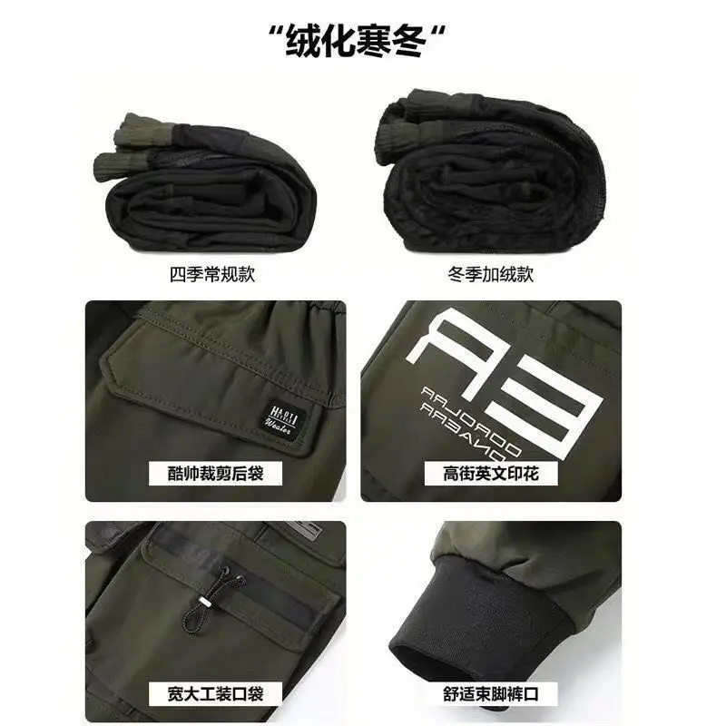 Мужские зимние брюки-карго, повседневные меховые Брюки с карманами,...