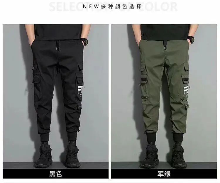 Джоггеры-шаровары с лентами, мужские брюки-карго, уличная одежда 20...