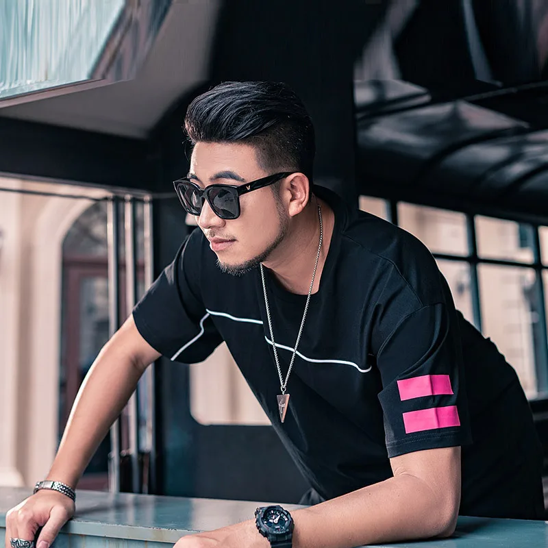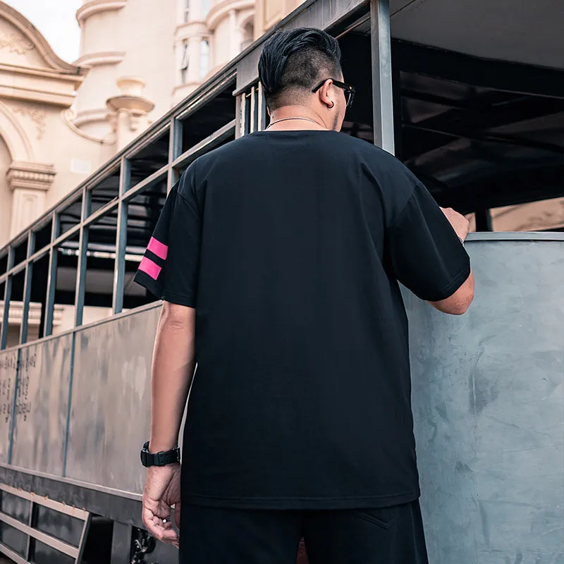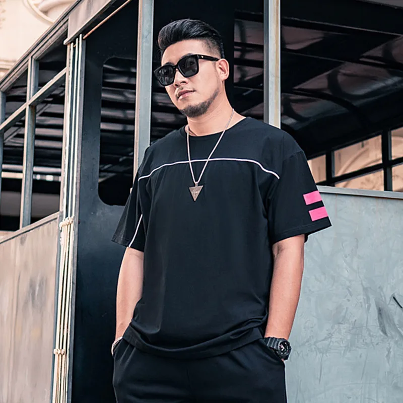 Летнее платье в стиле "Ретро", большой Размеры Мужская мода индивидуальность бренда контрастная строчка футболки толстые свободные увеличения с короткими рукавами футболки 140 кг 7XL