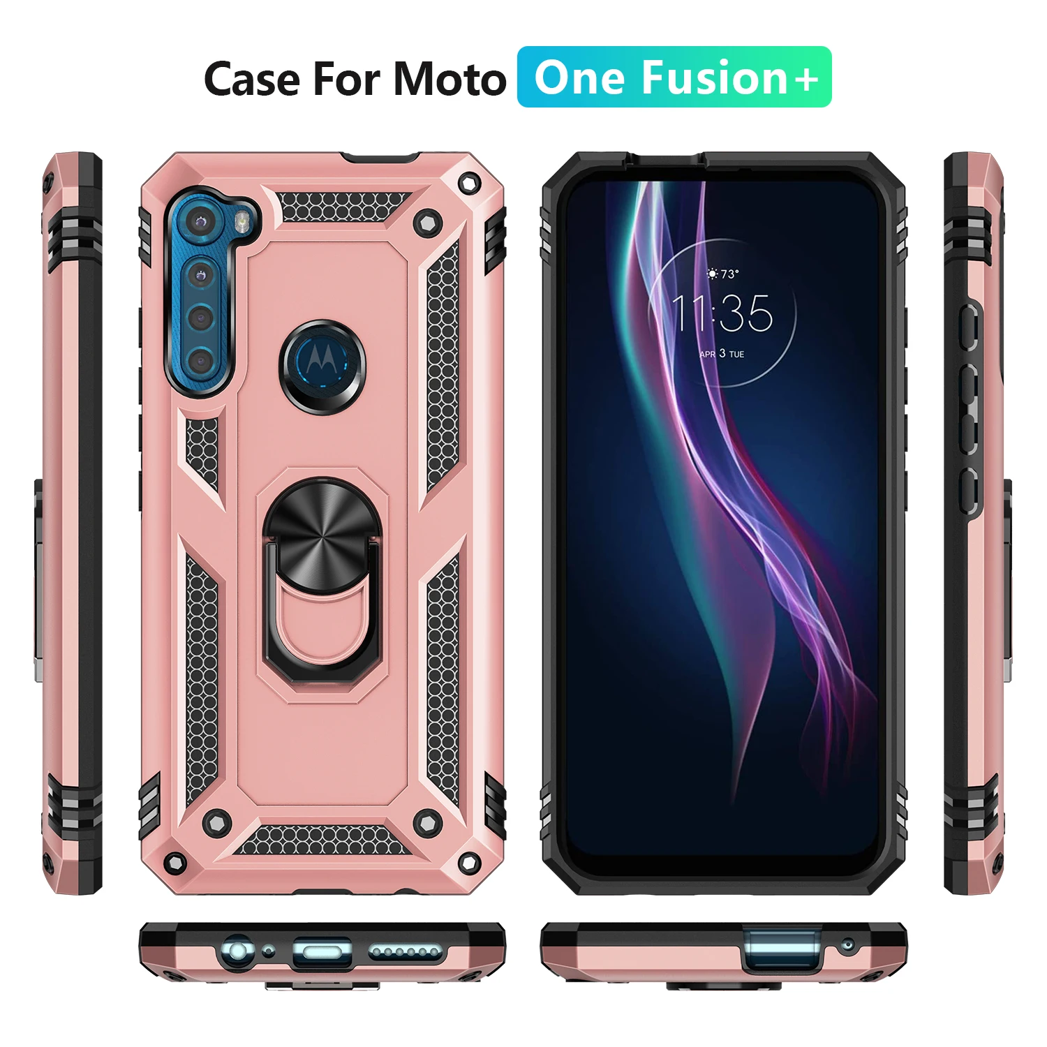 Бронированный противоударный чехол для Motorola Moto One Fusion Plus, военный противоударный автомобильный держатель с кольцом, чехол для Moto One Fusion +