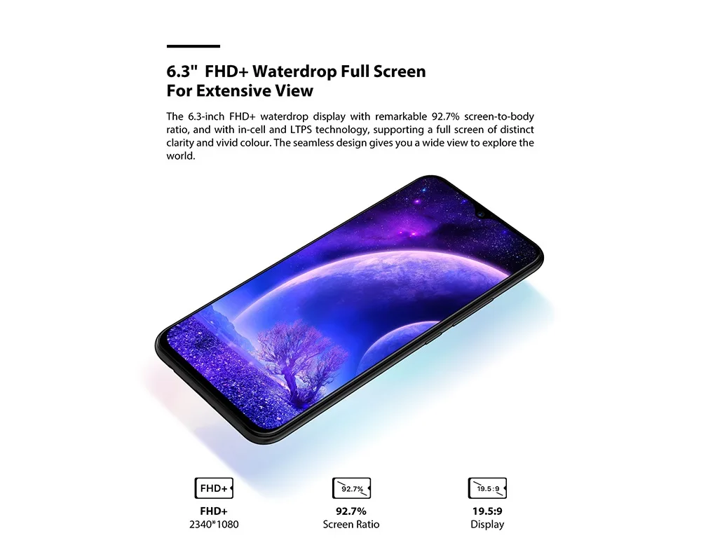 Разрешение экрана: 2340x1080Экран Размер: 6,3 дюймовТип экрана: емкостный
