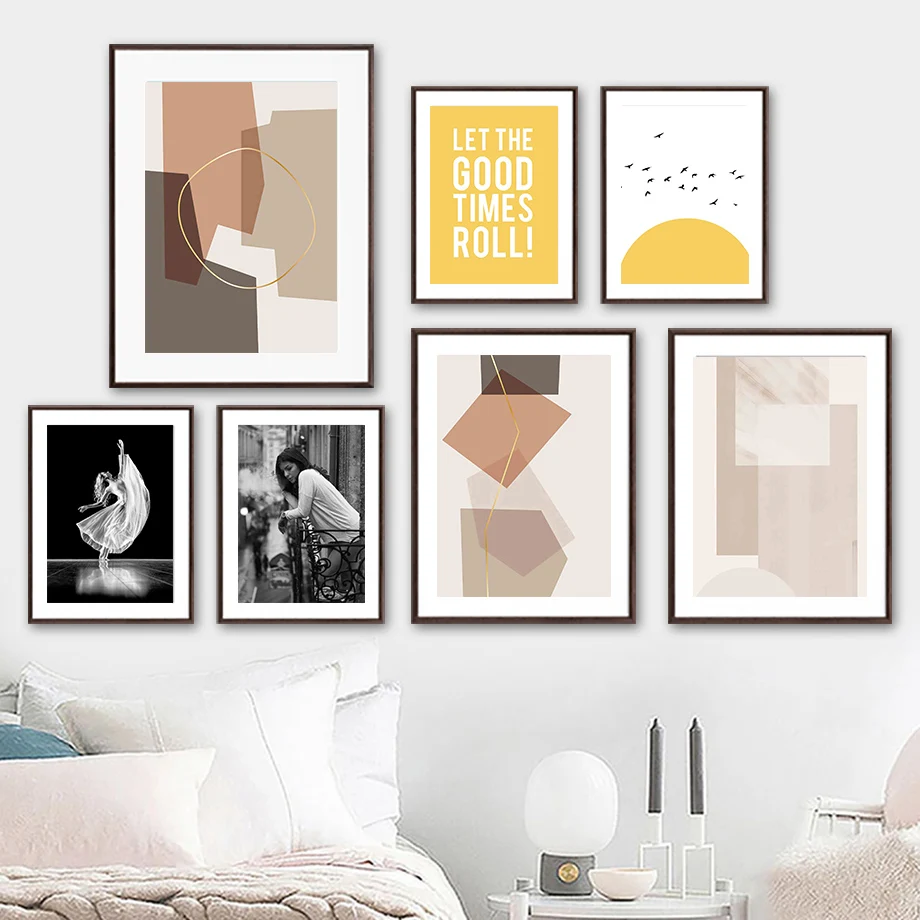 Девушка танцевальная леска Геометрия солнце птица юбка настенная Картина на холсте скандинавские плакаты и принты настенные картины для декора гостиной