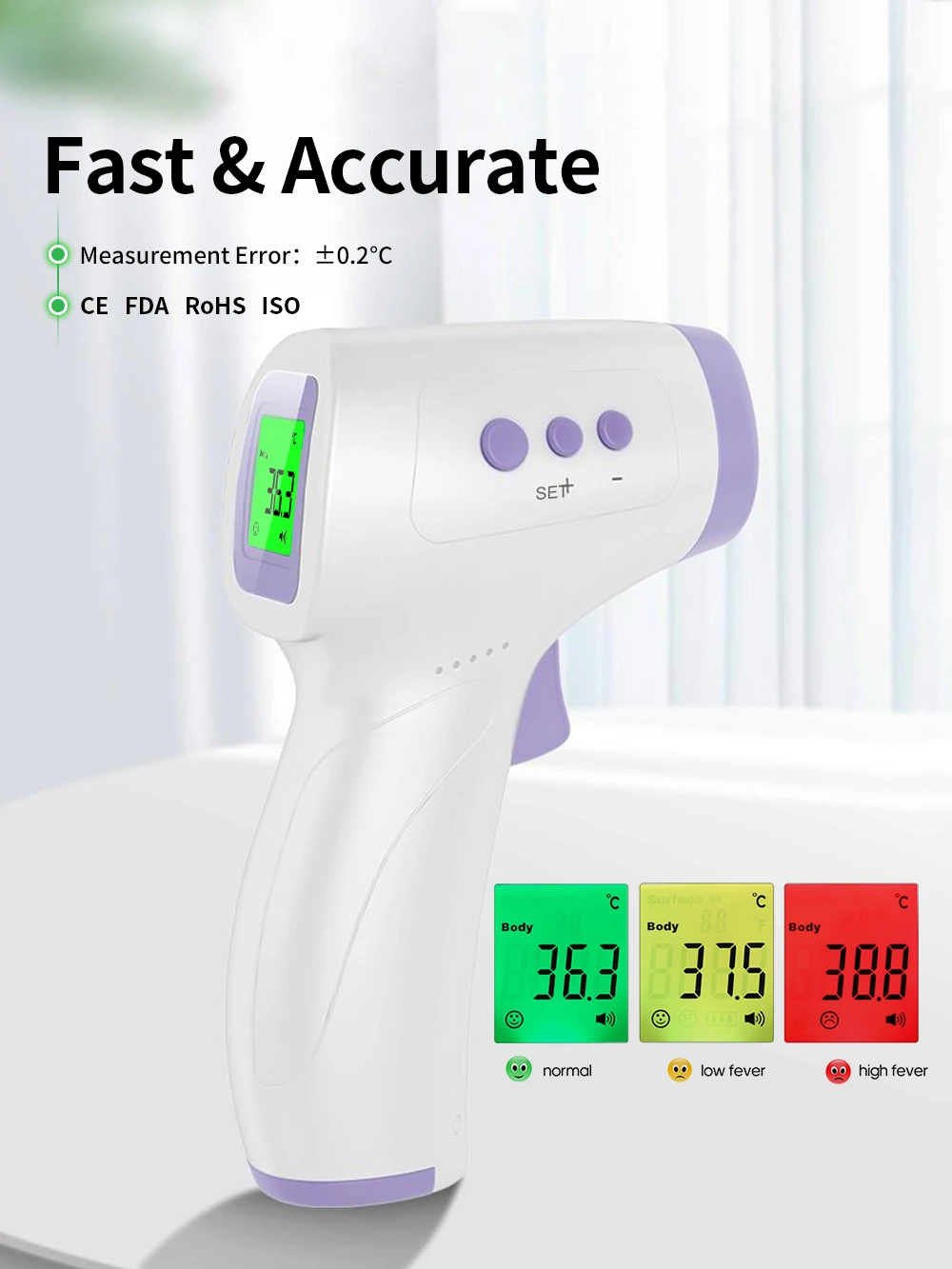 1. Точный и надежный: наш термометр для лба оснащен самой передовой медицинской инфракрасной технологией и высокоточным датчиком, который может получить надежные и точные показания в течение 1 с. Мы используем профессиональный медицинский АБС-материал, который безопаснее, чем традиционные ртутные термометры.