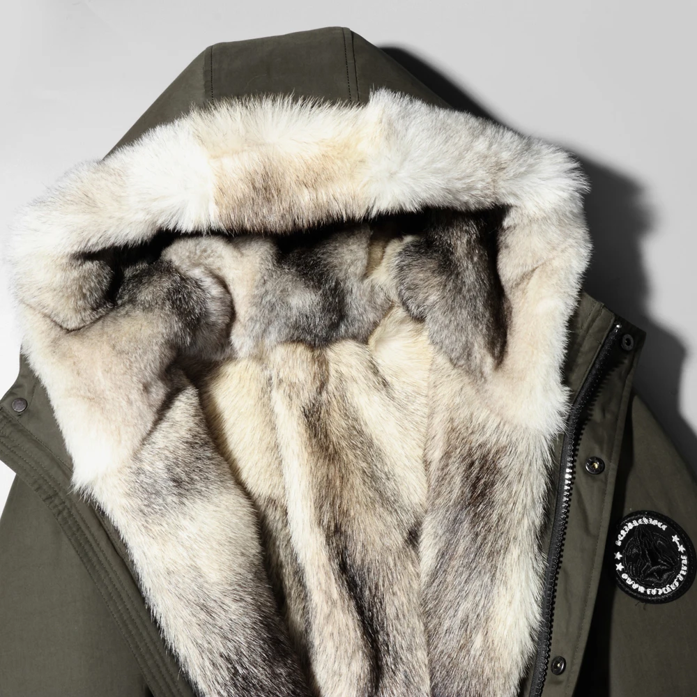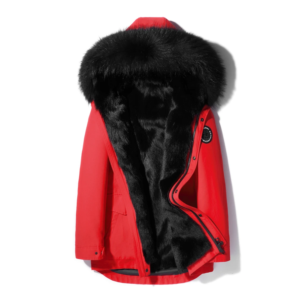 Парка мужская зимняя с натуральным мехом, теплая парка с капюшоном из натурального меха волка, гарантированное качество, красный цвет