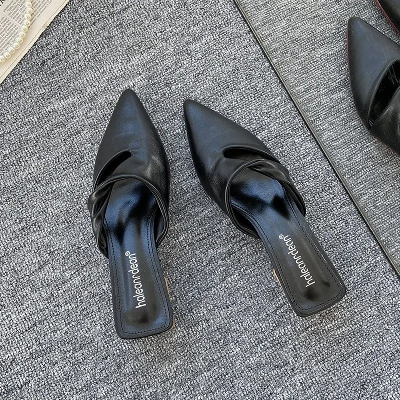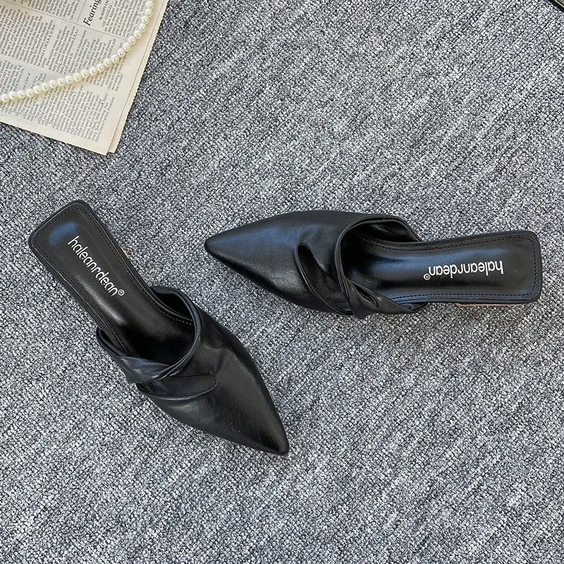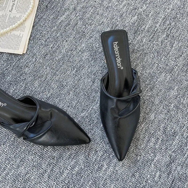 Туфли женские без задника, заостренный носок, сланцы, низкий каблук...