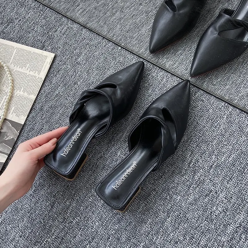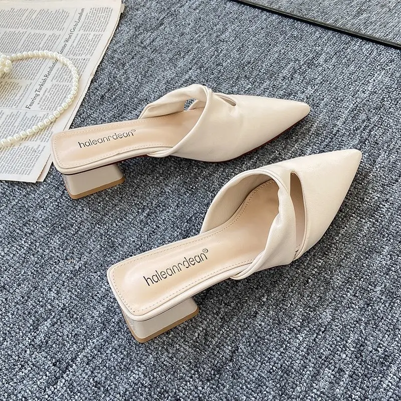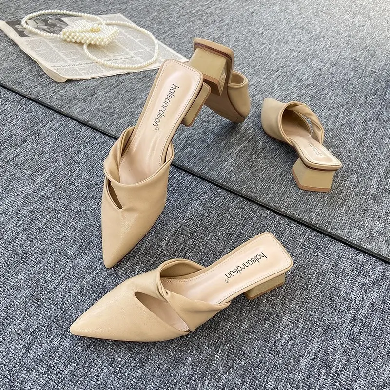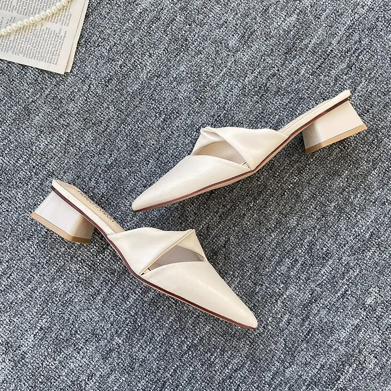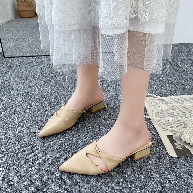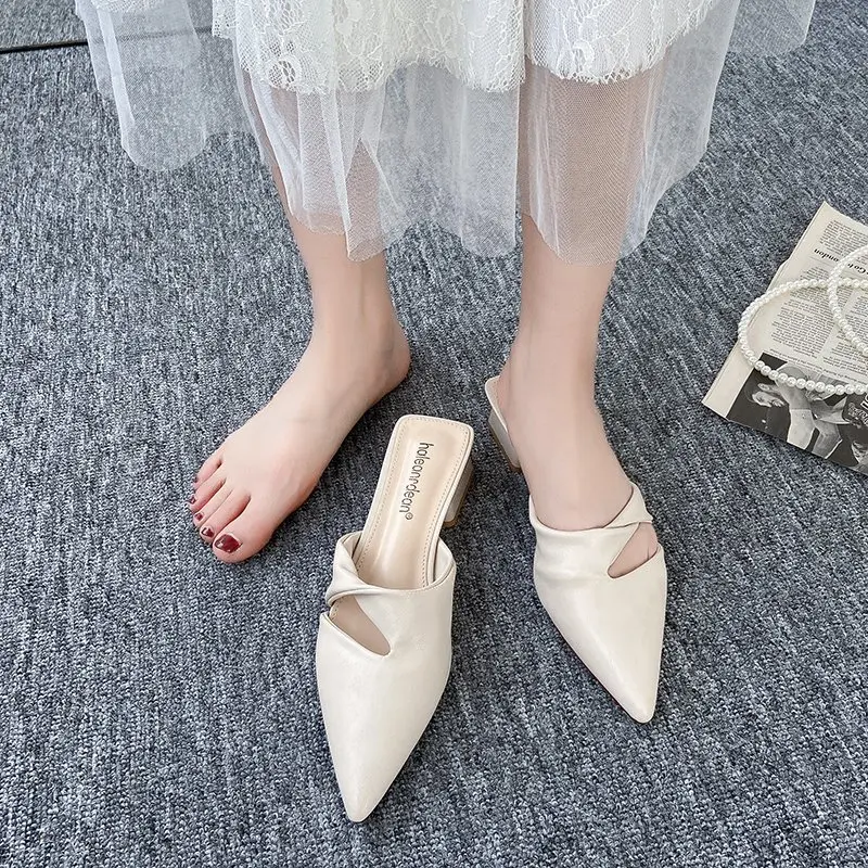 Шлепанцы женские на низком каблуке, пляжные мюли, сланцы, заостренный носок, повседневные, для улицы, шлепанцы, BC199, 2021
