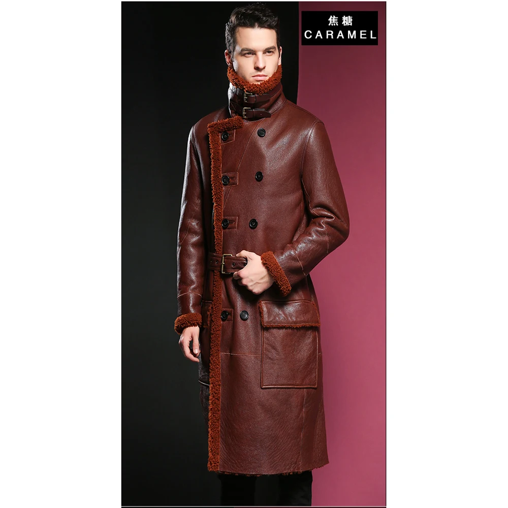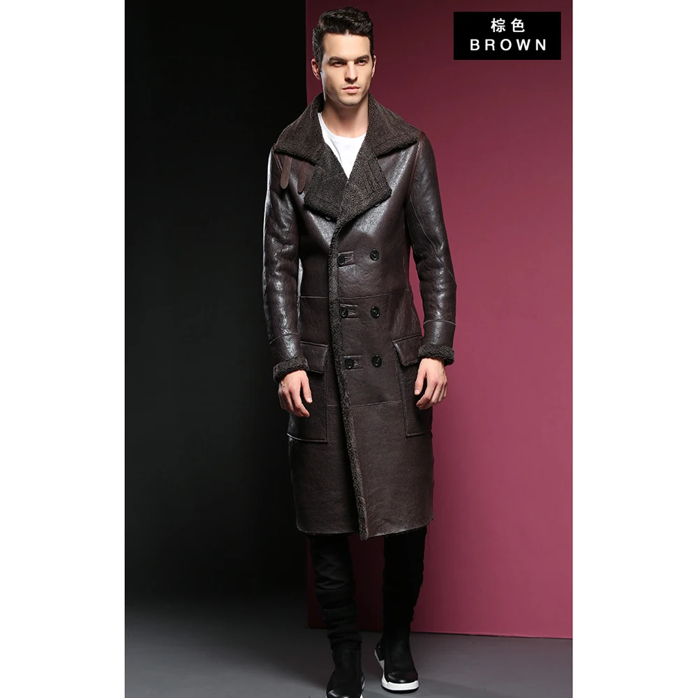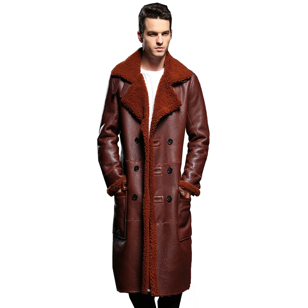 Мужская шуба из овечьей кожи, официальная длинная куртка из натуральной овечьей шерсти, 4XL, для зимы