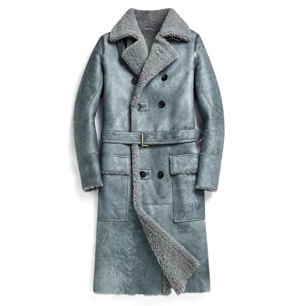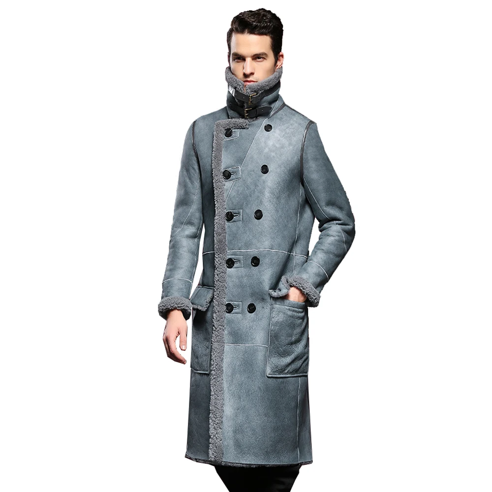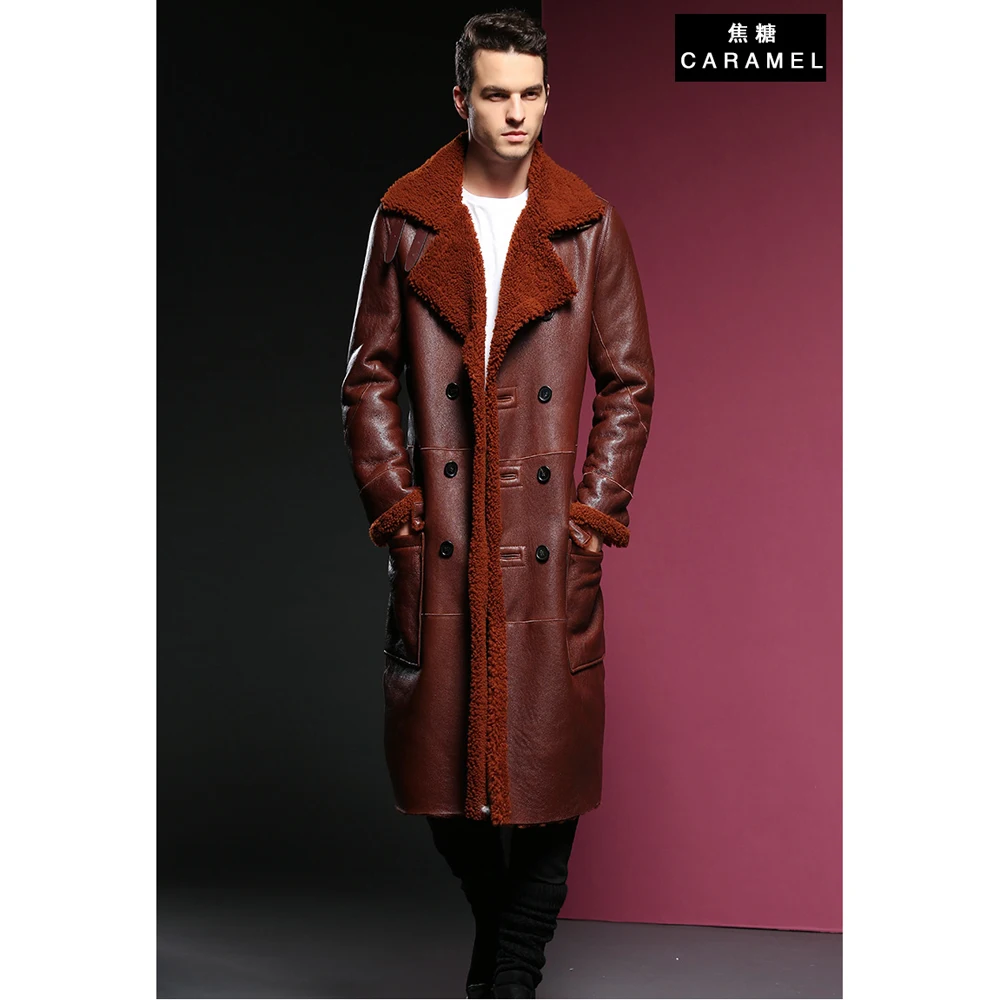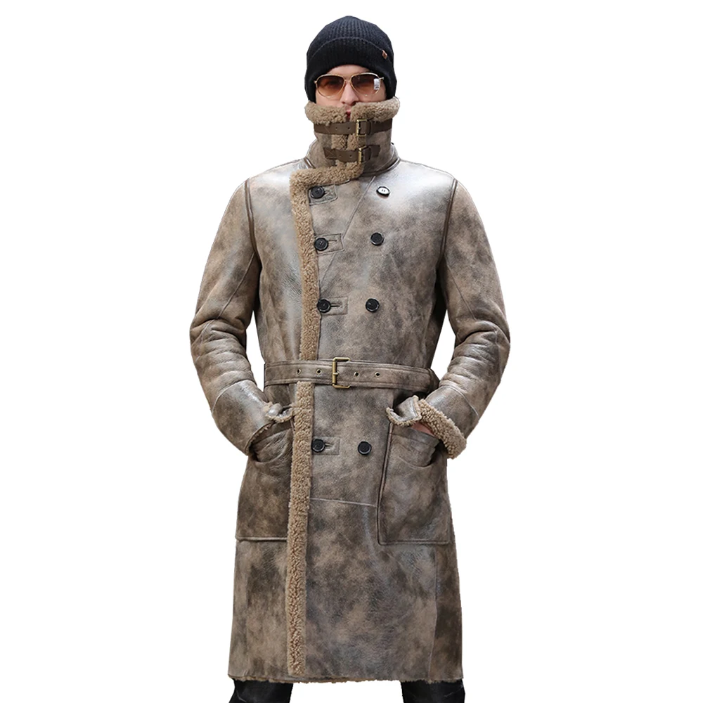 Мужская шуба из овечьей кожи, официальная длинная куртка из натуральной овечьей шерсти, 4XL, для зимы
