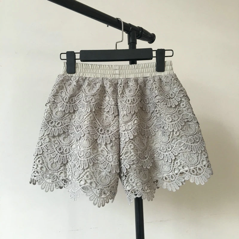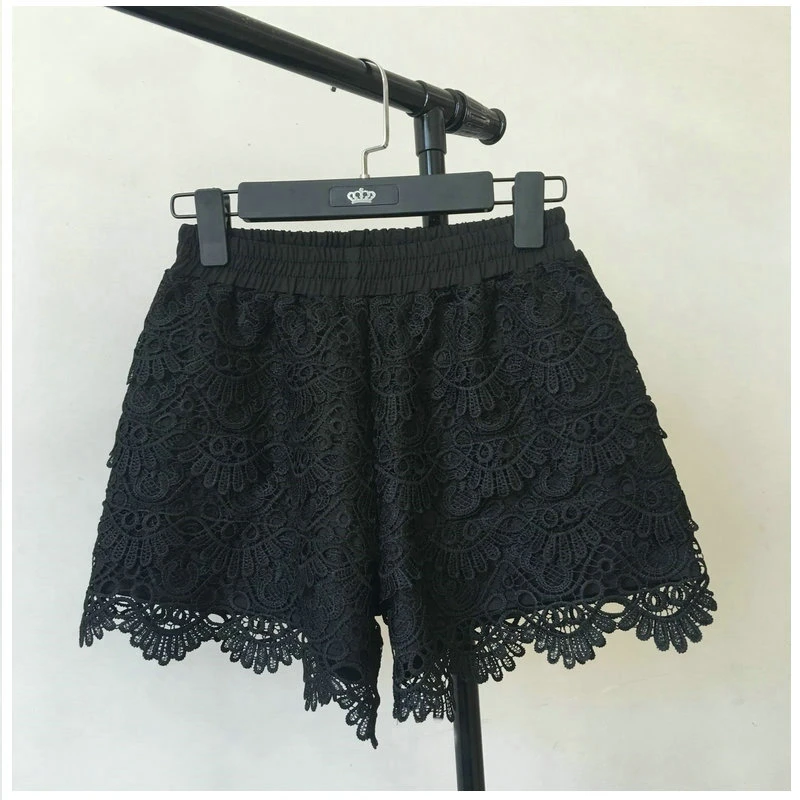Шорты женские кружевные с завышенной талией, пикантные эластичные Короткие штаны с широкими штанинами, белые черные, K560, весна-лето 2022