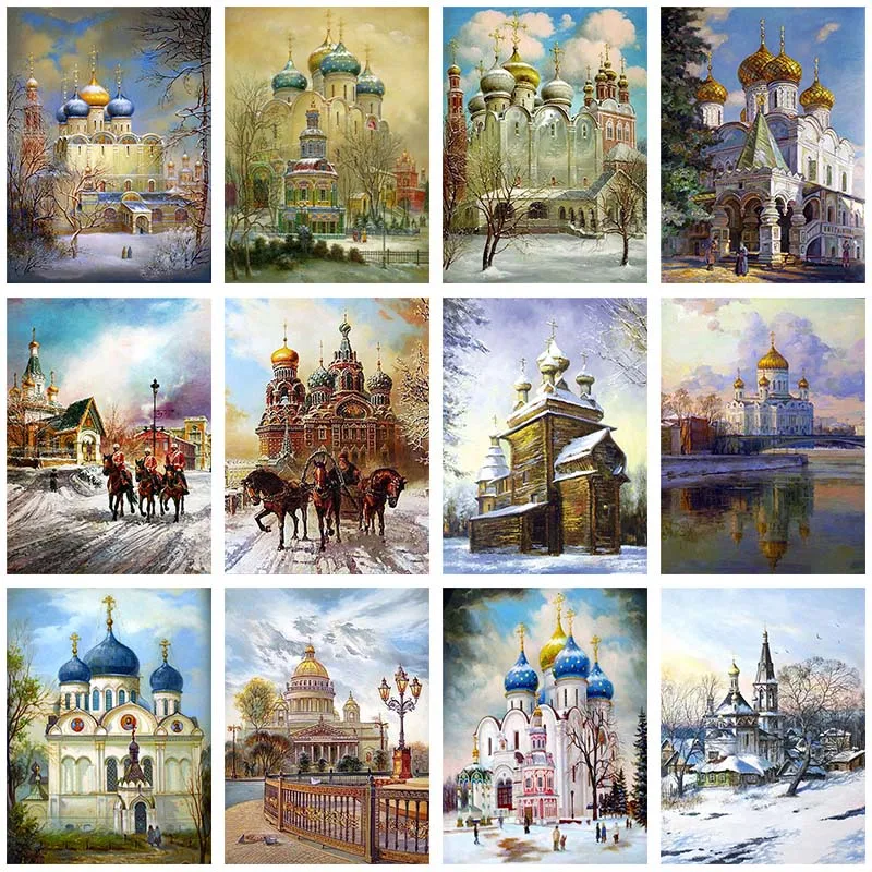5D алмазная живопись сделай сам, вышивка крестиком, зимняя церковная вышивка, мозаика ручной работы, полная квадратная круглая вышивка, украшение для стен, подарок ручной работы