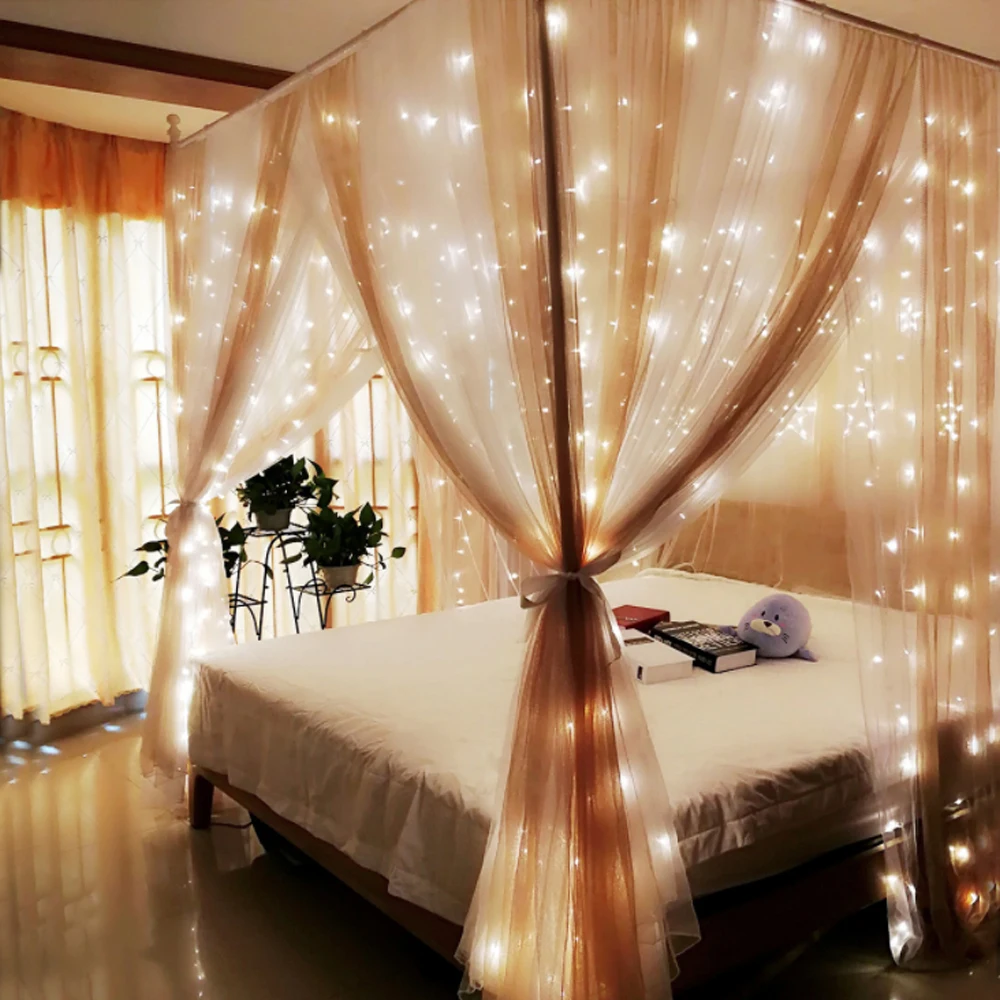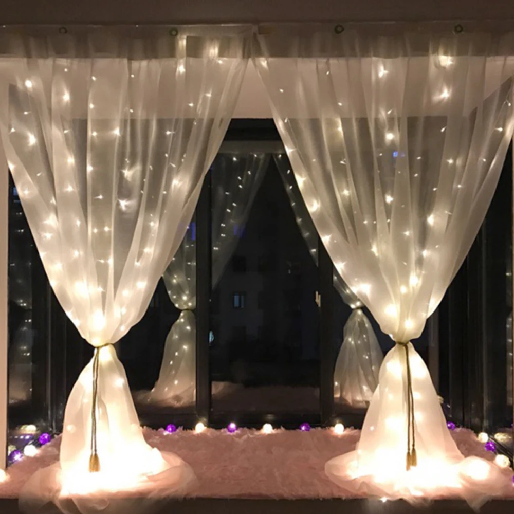 Гирлянда-занавеска на окно с вилкой европейского стандарта, 220 В, 3 х3 м