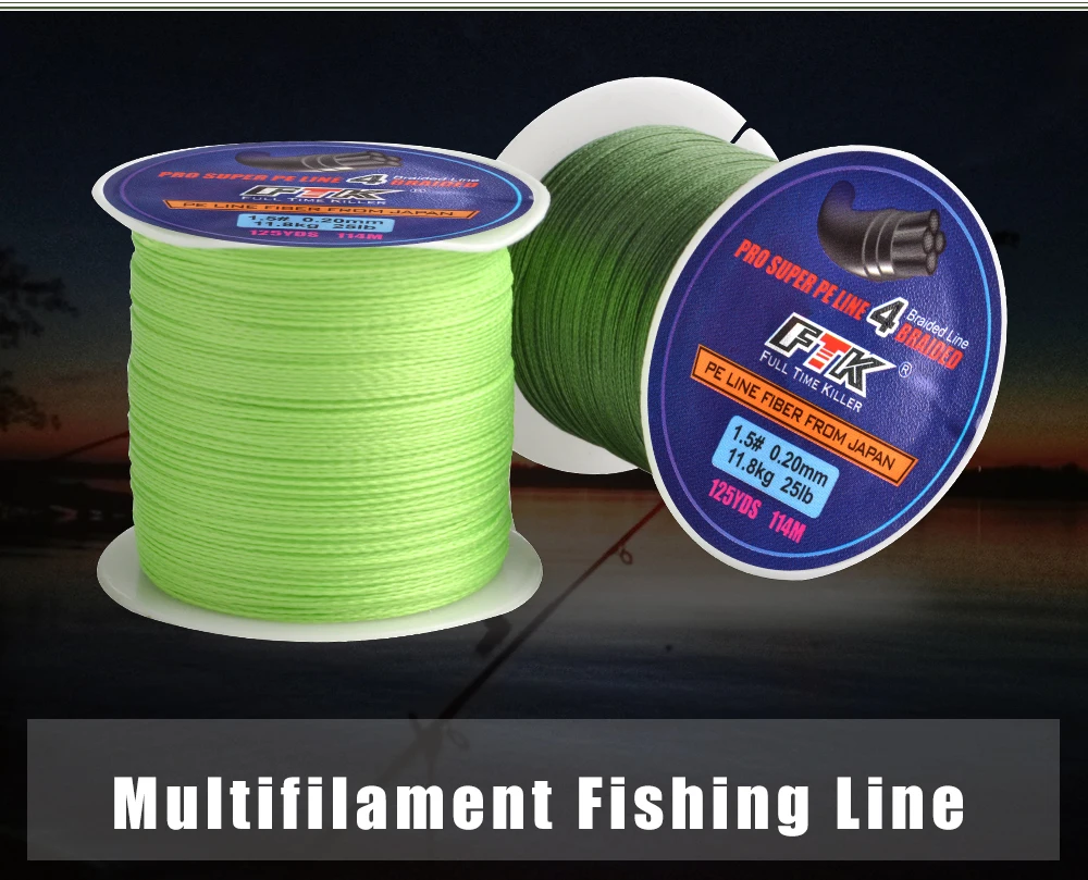 Плетеная рыболовная леска FTK 114 м 125 ярдов 4 нити PE 8 10 20 30 ...
