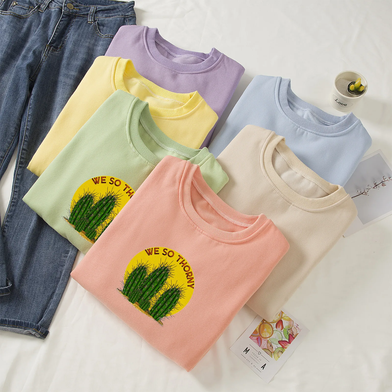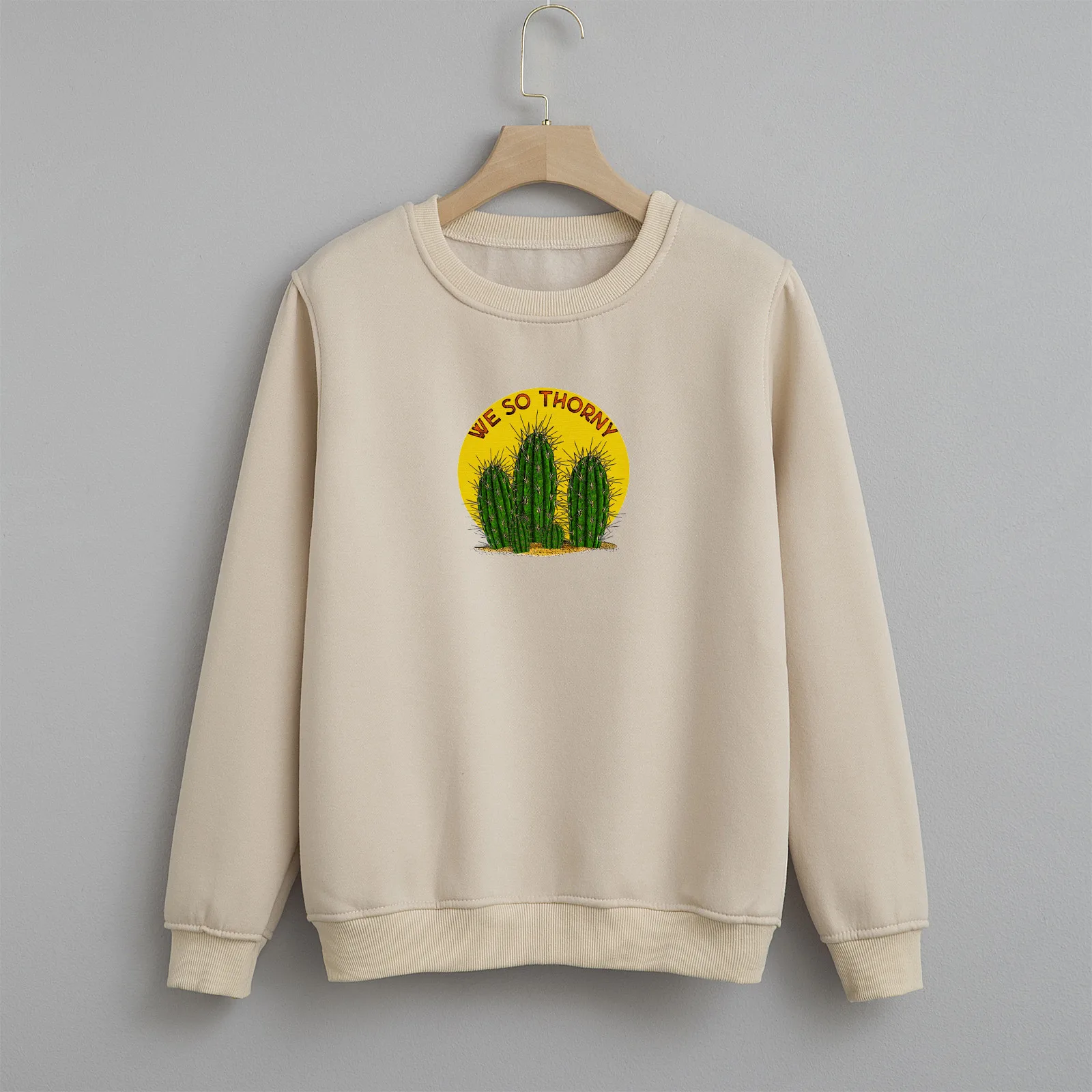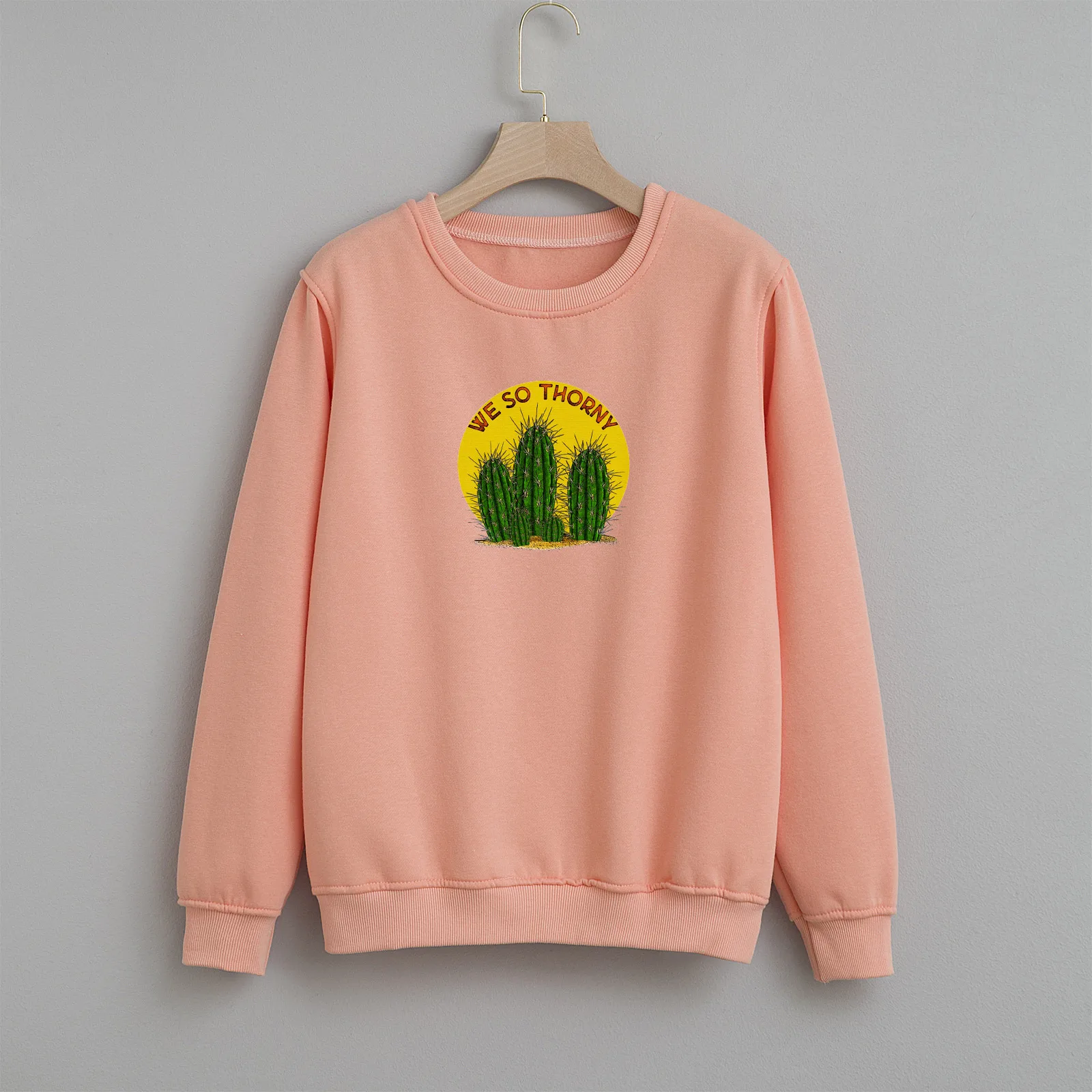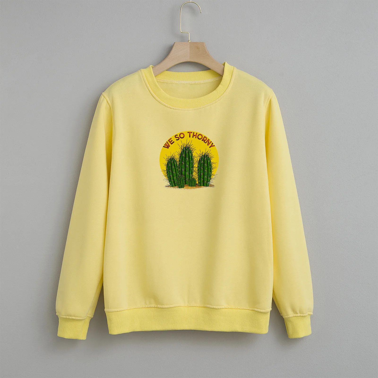 Размера плюс кофта с капюшоном с длинными рукавами зима Harajuku кактус, пуловер-свитшот с принтом женская одежда для подростков осень-зима Kawaii одежда с открытыми плечами