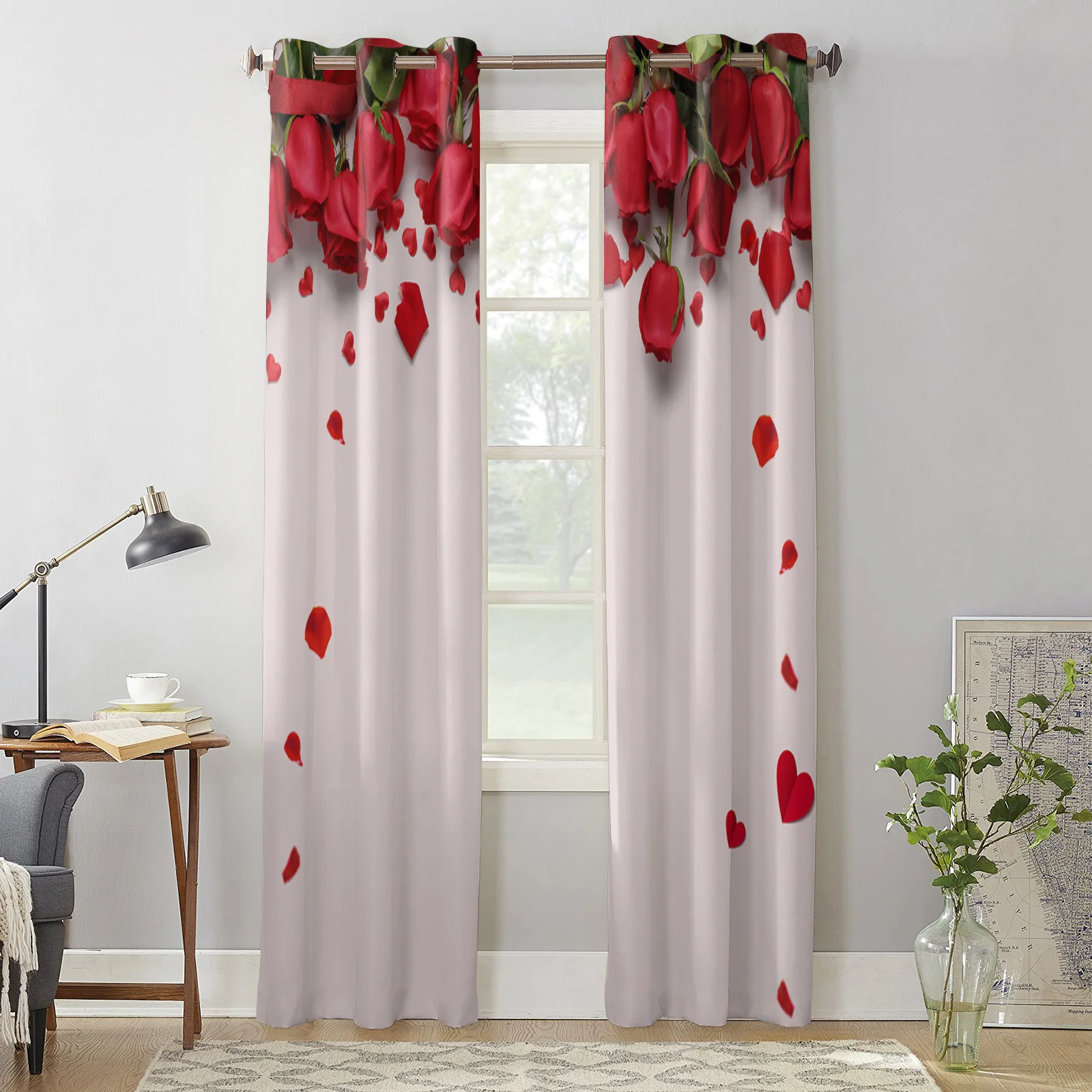 Полупрозрачные изысканные оконные шторы на День святого Валентина, шторы с красными розами для гостиной, спальни, панели для кухни, шторы на заказ