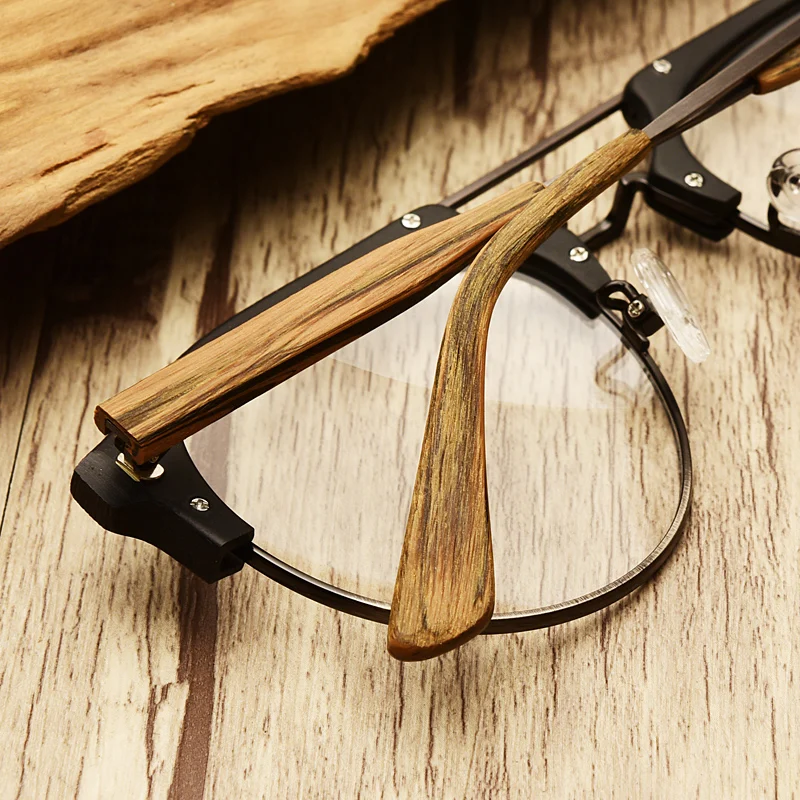 Очки HDCRAFTER в металлической оправе с деревянными дужками для муж...