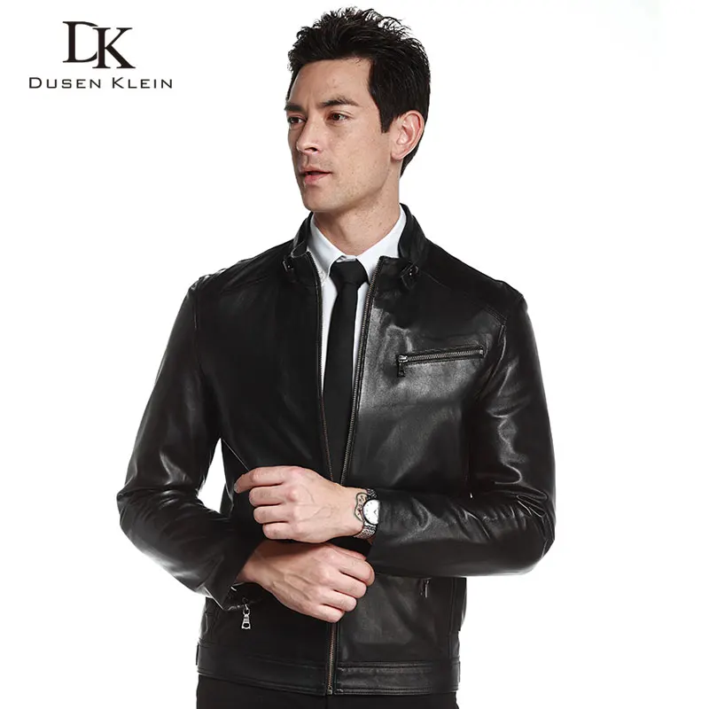 Мужская кожаная куртка Dusen Klein, черная приталенная куртка из на...